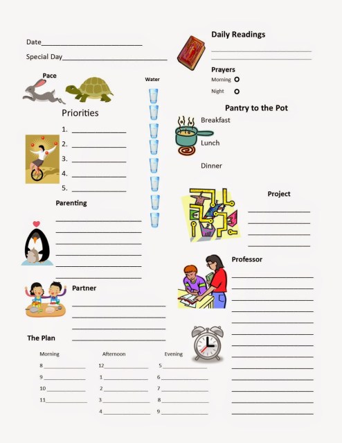 The Plan- A skeleton for the day…when I will do what’s on the docket.